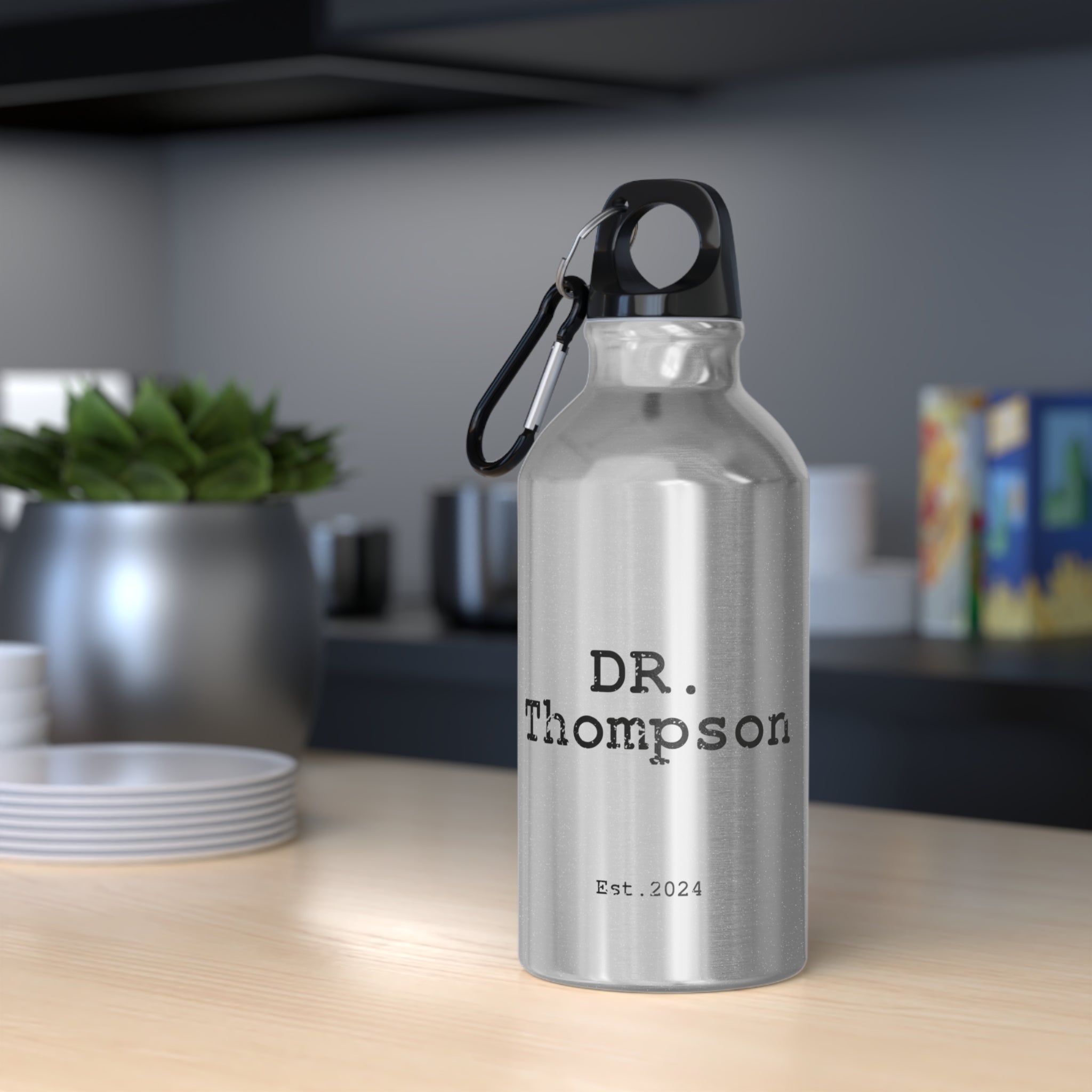 Stainless steel hydration bottle with custom name and doctor title Leakproof travel water bottle for physicians and PhD graduates