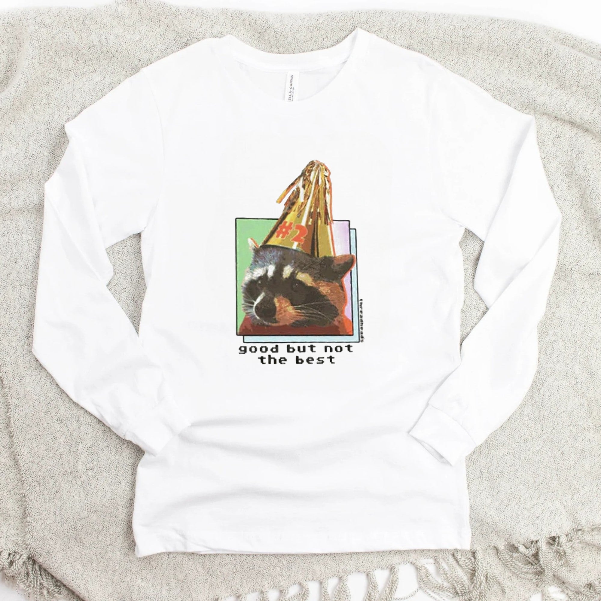 Soft cotton t-shirt featuring a witty and stylish message White statement t-shirt with bold minimalist print