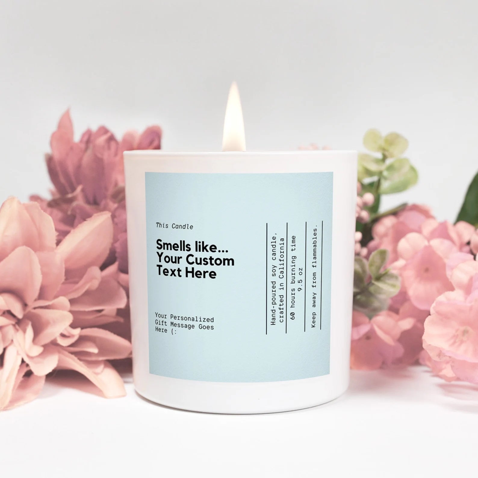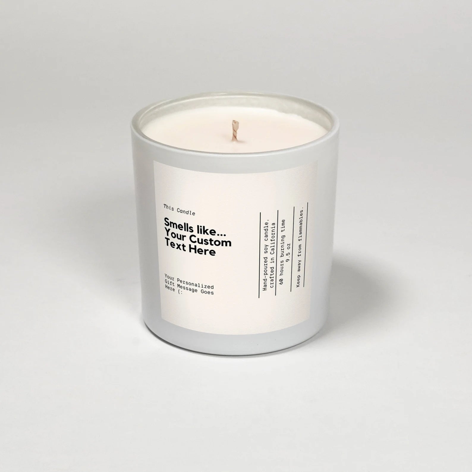 Hand-poured candle with unique customizable label Custom candle with personalized text message